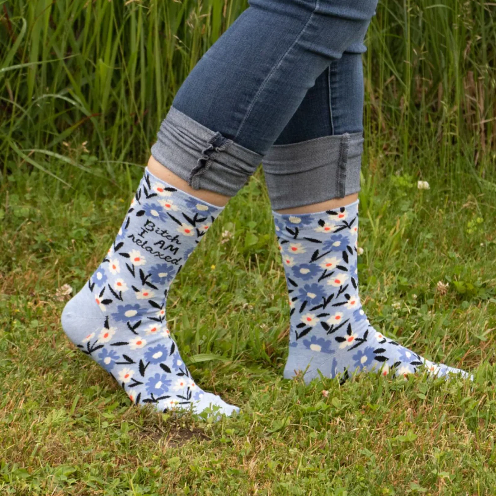 Blue Q Womens Crew Socks 'Bitch I am Relaxed'